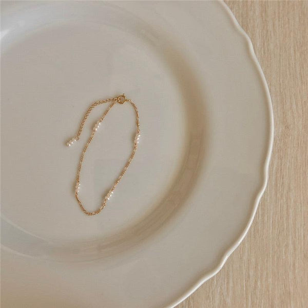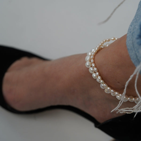 - Our Tiny Pearl Anklet has a stretchy string and can be worn by a big range of sizes
