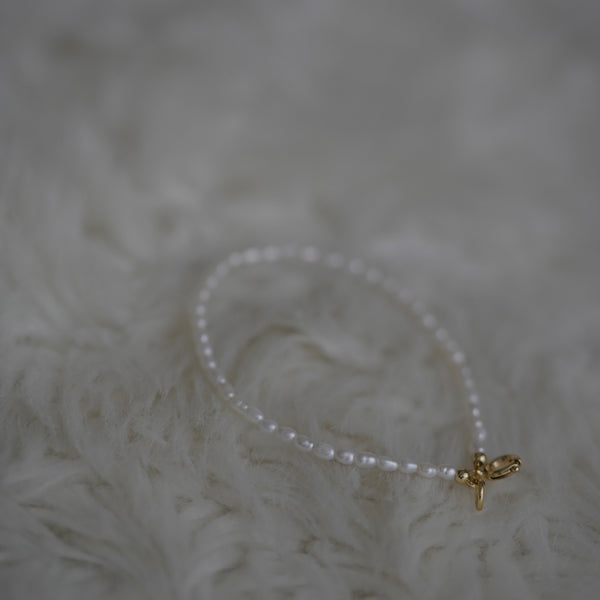 Small big things. The tiniest eye-catcher. The raw natural and delicate beauty of this piece gives us warm feelings. Our Tiny Pearl Anklet is made of tiniest possible freshwater pearls. Every pearl is sustainable and unique. The anklet has a strong stretchy string and can be worn in a big range of sizes.